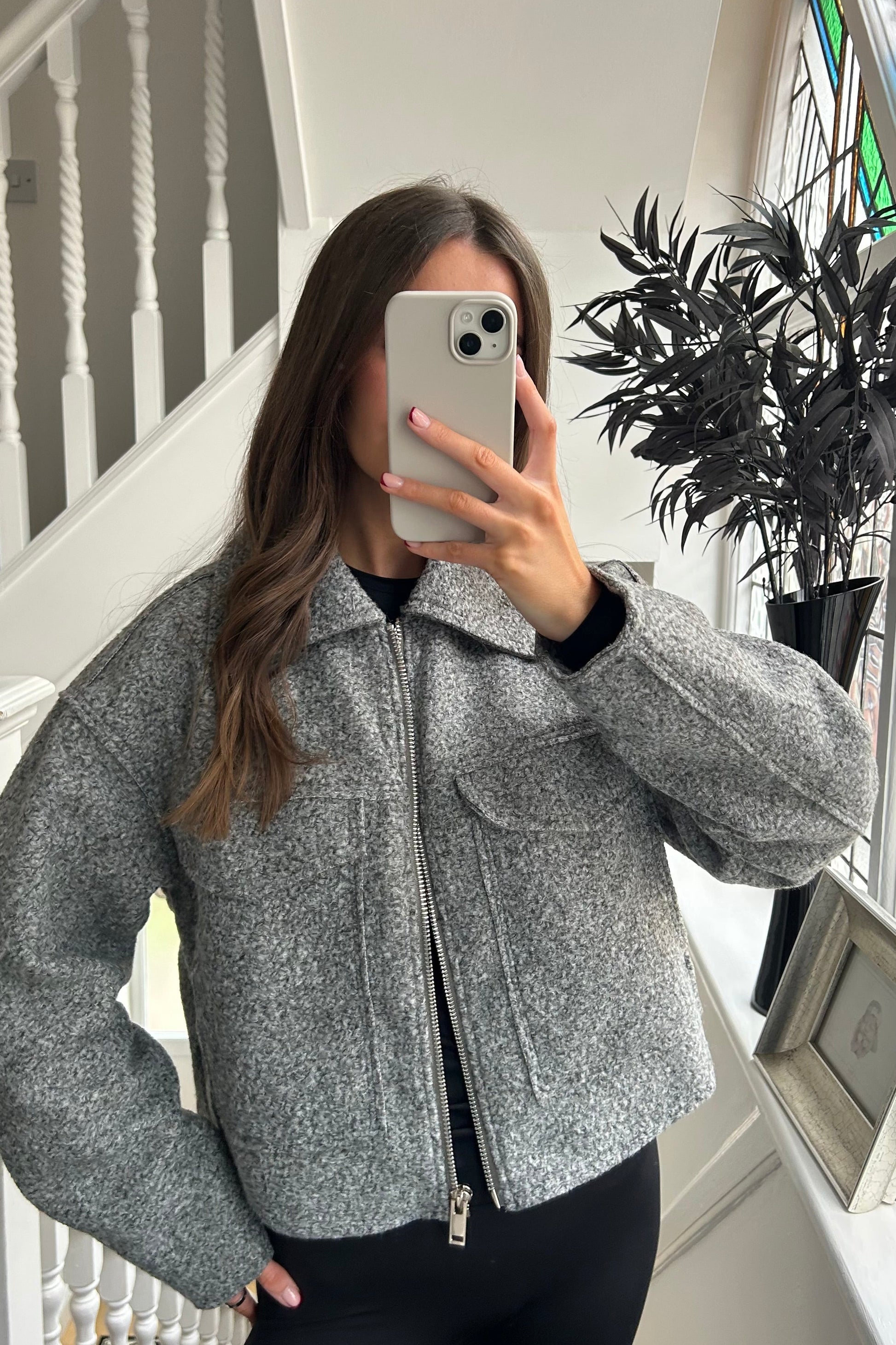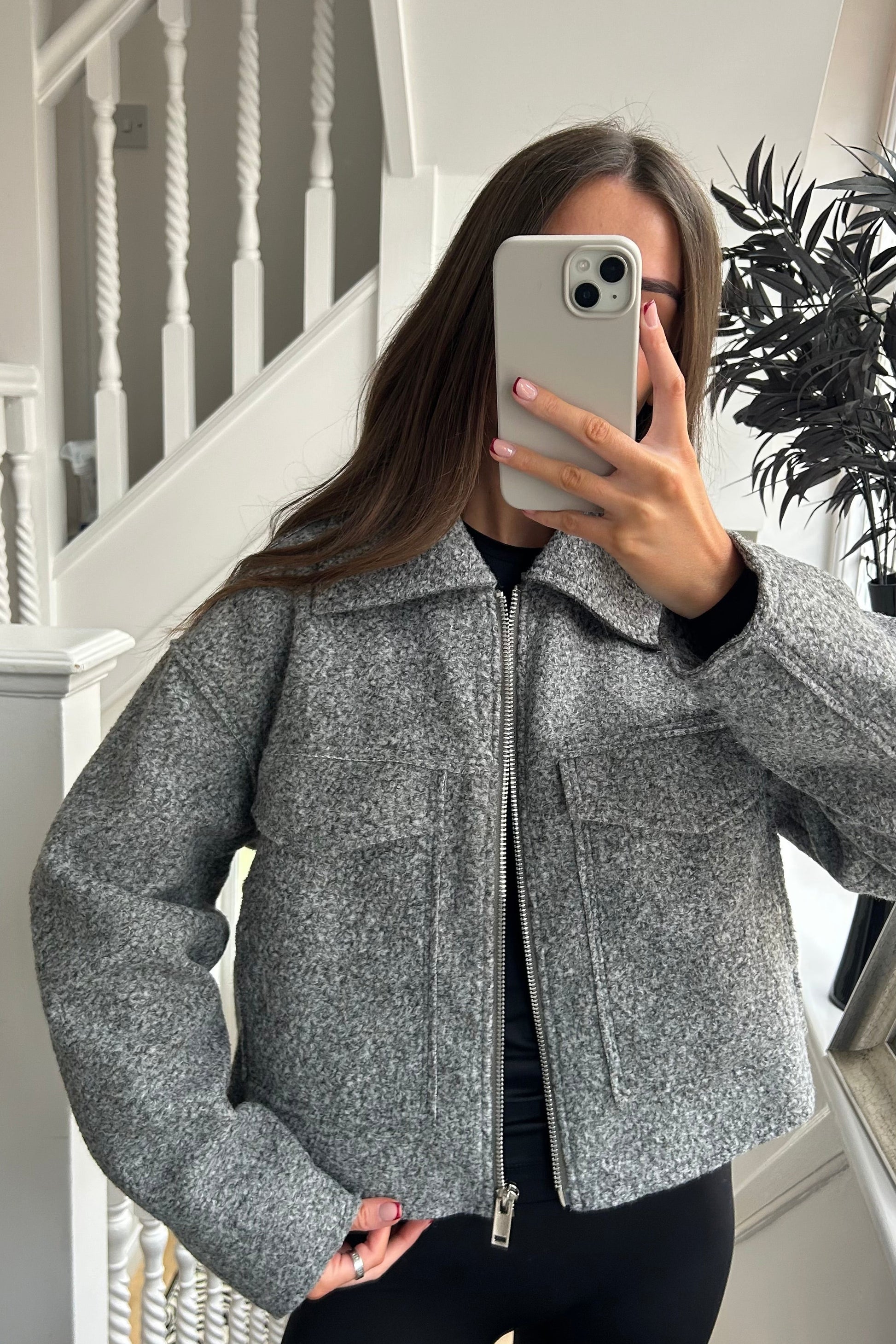 Grey zip up cropped jacket