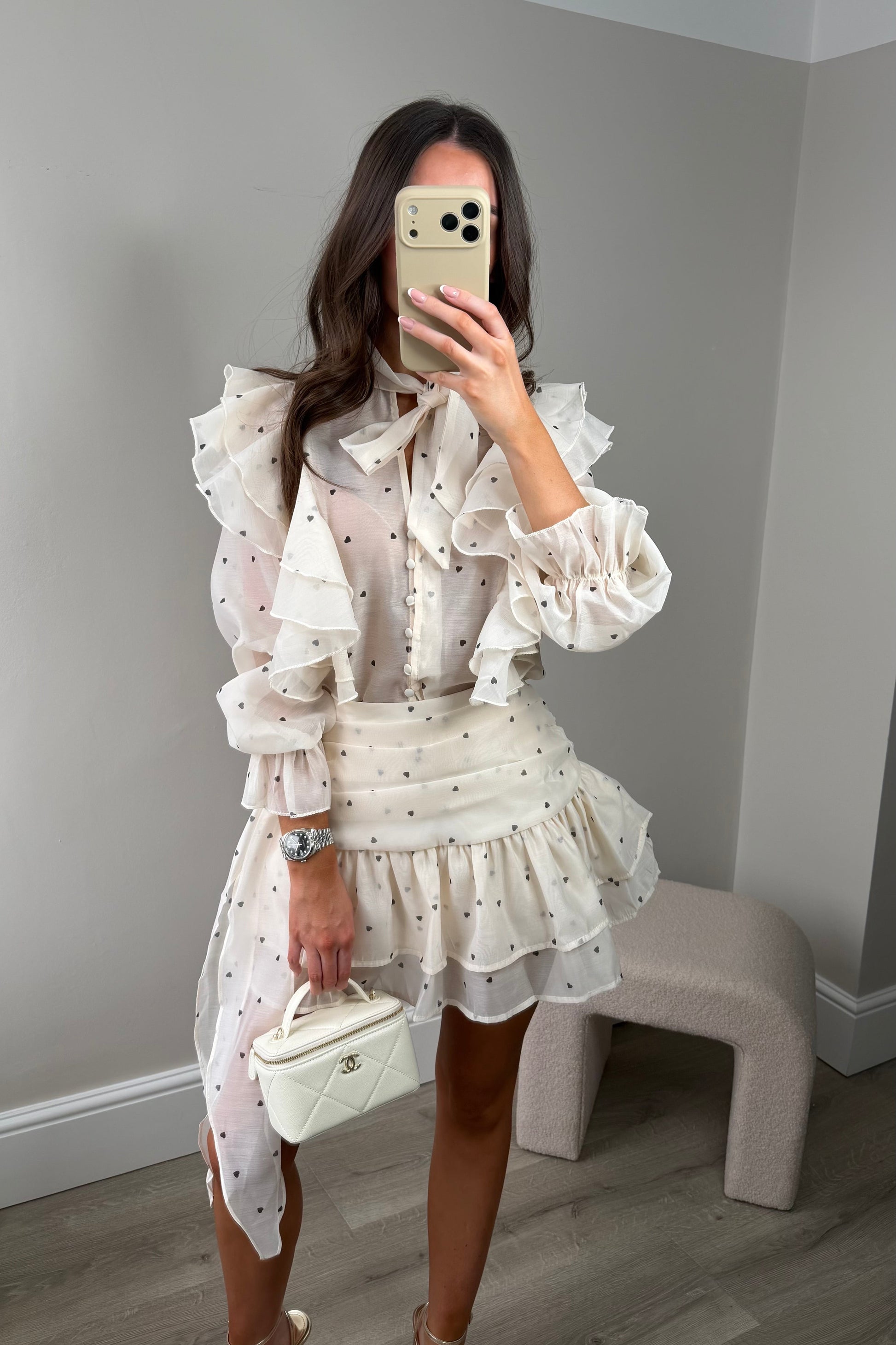 ‘FREYA’ FRILL HEART BLOUSE AND SKIRT SET - CREAM